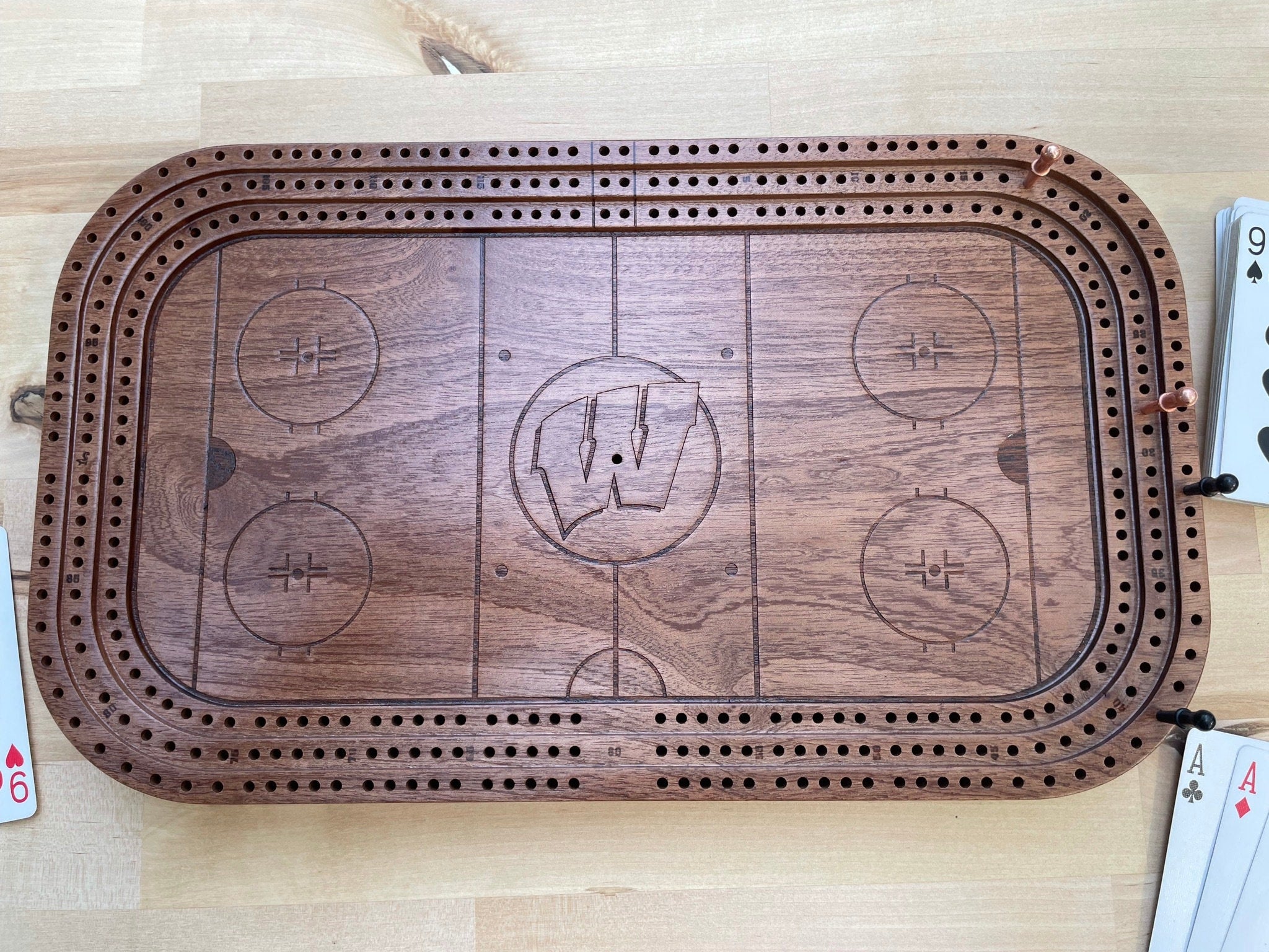Attention Badgers! Do you bleed Wisconsin red? Is "On Wisconsin" playing inside your head? If so, upgrade your cribbage game to an officially licensed, handmade, Camp Randall Stadium or Badger Hockey cribbage board!